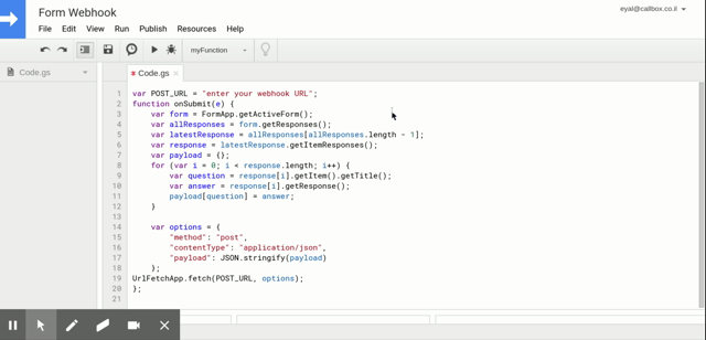 4. Notice that at line #1 of the script there is a variable called POST_URL, we need to replace the placeholder text “enter your webhook URL” with a real webhook url you can get off Integromat, Zapier or even your custom endpoint.