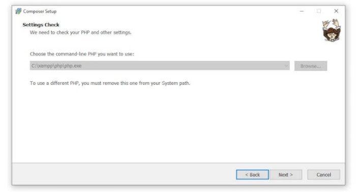 - Lalu, tekan tombol Next dan tentukan lokasi file instalasi. Biasanya lokasi ini tergantung dengan lokasi file php (php.exe) yang ada pada sistem.